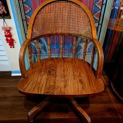 Vintage oak bankers or captain's chair featuring a swivel base with casters and a distinctive cane back. $85Boca Raton, FL