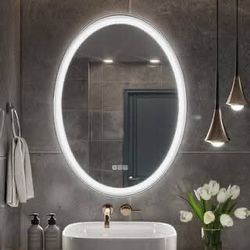 New-QueenFun Lindia 22 in. W x 30 in. H Oval Framed Anti-Fog Lighted Wall Mount Bathroom Vanity Mirror in White$90Fort Lauderdale, FL
