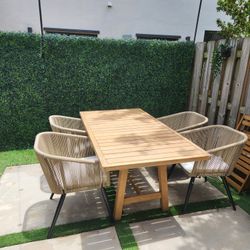 City furniture outdoor dining set patio table teak wood + 4 chairs + Cover (like new )