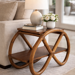 vintage coastal-style rattan bar paired with a matching wall-mounted glass-door cabinet & marble table top$295Fort Lauderdale, FL