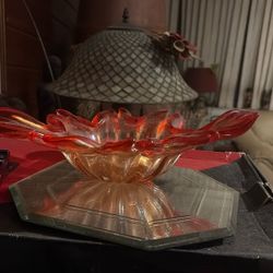 Hand Blown Glass Tapered Orange And Clear Vase$20Laud Lakes, FL