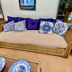 NEW Safavieh Coastal Boho Comfy Rattan Wicker Wood Accent Chair W Ivory Cushions $275Pompano Beach, FL