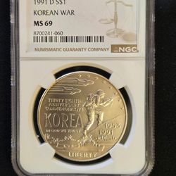 1991-D Korean War Silver Dollar NGC MS69 Gem BU Graded Coin$120Hollywood, FL