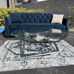 CB2 Designer Blue Velvet Couch$500Miami, FL