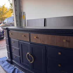 Navy Queen Velvet Bed and Nightstands$250Boca Raton, FL
