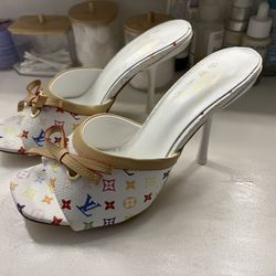White sandals heels size 8$15Miami, FL