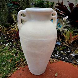 Vintage White Terracotta Amphora Form Vase Outdoor Indoor 29" Tall $75Boca Raton, FL