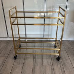 Gold Bar Cart w/ Glass Shelves – Rolling Serving Cart / Modern Glam $75Miami, FL
