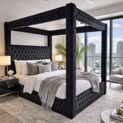 BLACK VELVET CANOPY BED w/ Bluetooth Speakers & USB’s 🖤$50Biscayne Park, FL