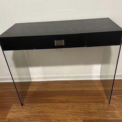 Black wooden table with glass legs$50Miami, FL