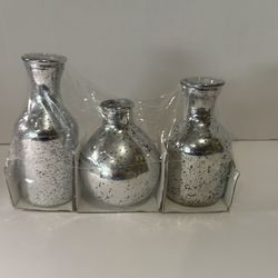 set of three metallic silver distressed glass bud vases$20Pace, FL