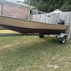 12/36 Jon Boat With Trailer And 10hp Tohatsu Motor Boat Is Water Ready $1,500Pace, FL