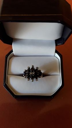 925 Sterling Silver Midnight Sapphire with chipped diamonds accent size 7 ring$79Gulf Breeze, FL