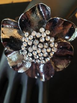 Flower rhinestone bracelet. Gray and color. Brand new. Hinged cuff. Flower is 3 inches in diameter. Fits a wrist up to 7.5 in.$10Largo, FL