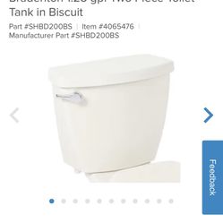 Signature Hardware SHBD200WH Bradenton White 1.28 gpf EcoClean Flush Toilet Tank$60Largo, FL