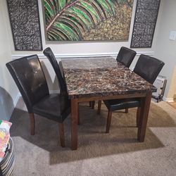 Faux Marble Table With 4 Leather Chairs, 1 Damaged On Seat$200Palm Harbor, FL