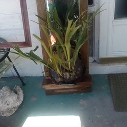 Very large staghorn plant come with pot watering plate on the shelf with a mirror backboard All American Wood style shellac$80Holiday, FL