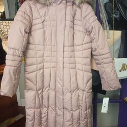 New Calvin Klein Women’s Long Puffer Coat with Detachable faux-fur hood full length Sz Medium Pink $120Brandon, FL