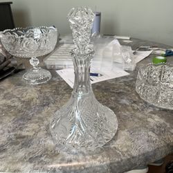3 GERMAN CRYSTAL HEAVY STUNNING ANTIQUE DECANTER , BOWL AND PEDESTAL BOWL- MINT NO CHIPS OR WEAR! $159Wimauma, FL