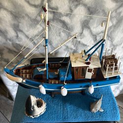 NAUTICAL WOOD MODEL FISHING BOAT DETAILED BLUE & WHITE TABLE TOP ARTWORK$25Belleair, FL