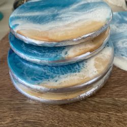 Gift , Resin Ocean Coasters Silver Edge Set Of 4$30Dunedin, FL
