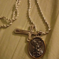 Rope Chain With Cross And Saint Michael Pendant In Perfect Condition $8New Prt Rchy, FL