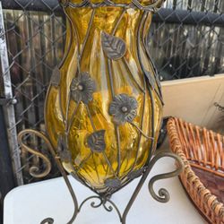 Amber Glass Vase with Wrought Iron Floral Stand – Vintage Style Statement Piece$150St. Petersburg, FL