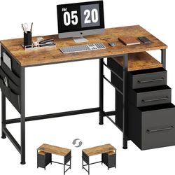 Maihail Small Desk with Drawers, 40 inch Computer Desk with Shelves, Writing Desk with Storage, Small Office Desk with Metal Frame, Rustic Brown$40Valrico, FL