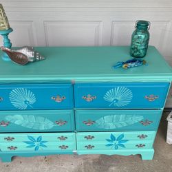Stunning Large Teal Dresser Oak Heavy Quality With Picture And Mirror $500Dunedin, FL