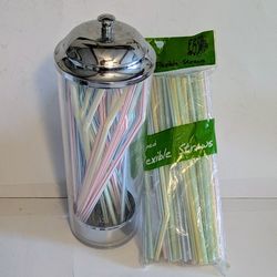 Straw Container Filled With Flexible Pastel Drinking Straws & Multi Colored Pack$20Brandon, FL