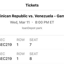 WBC Venezuela Vs Israel Two Ticket$35Pembroke Pines, FL