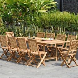 BRAND NEW Extendable Rectangular Outdoor Furniture 11 Piece 100% FSC Certified Teak Wood Dining Set