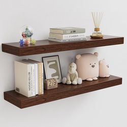 NEW - Walnut Floating Shelves, 2 Inch Thick Wooden Floating Shelves Set of 2 , 24” x 8”$30Oakland Park, FL