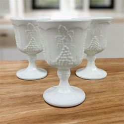 Vintage Indiana Glass Harvest Grape Milk Glass Goblets Set of 3 Pedestal MCM$38Fort Lauderdale, FL