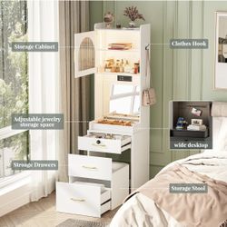 3 in 1 Vanity Desk with Mirror and LED Lights, Corner Vanity Desk, Modern Small Makeup Vanity, Human Sensor Led Light, Charging Station & Chair, Stron$130Fort Lauderdale, FL