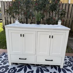 TEMPORARY HOLD! 49"x22" Quartz Bathroom Vanity Top with Double Undermount Ceramic Sink, White, Black Hardware$80Hollywood, FL