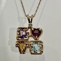π Custom Colored Stone Love Pendant 14KT Yellow Gold & Diamond βL@@Kβ π©΅$450Boca Raton, FL