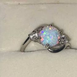 Sterling Silver 925 Ring. Opal & Diamond Look $25. OR. Vintage Cat Pussycat Kitten Pin With Emerald Eyes $25. Your Choice. Ring Or Pin $25 Each. $25Boca Raton, FL