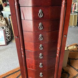 Mahogany Cherry Wood Jewelry Armoire Cabinet Chest. 8 Drawers & Mirror 40.5” H X 18” W X 12.5” D. Organize & Store Your Gold & Sterling Silver Jewels!$85Boca Raton, FL
