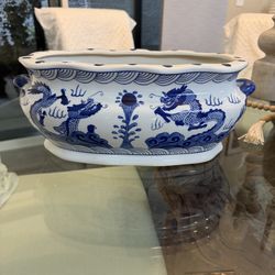 Vintage blue and white double dragon Asian Jardiniere ( cache pot)$100Ocean Ridge, FL