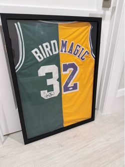 Larry Bird/Magic Dual signed jersey framed with COA$750Pompano Beach, FL