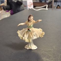 Vintage Dresdner Art, Dresden Lace Porcelain Ballerina Miniature Figurine Made In Germany, Has "R" Under The Crown 3" SEE DESCRIPTION $15Fort Lauderdale, FL