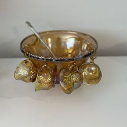 ⭐️🥰 INDIANA GLASS Carnival Iridescent PUNCH BOWL SET Princess 👑 ⭐️$40Miami Beach, FL
