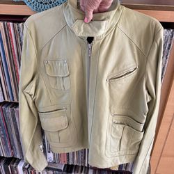 PRICE DROP: CELERY GREEN, lined size 14 LAMBSKIN LEATHER JKT by IDENTIFY$350Lake Worth, FL