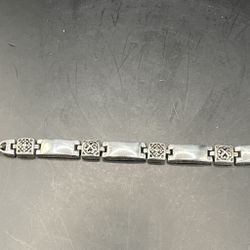 Vintage Artisan Style Silver Tone Panel Link Bracelet with Fleur-De-Lis Accent$24Boca Raton, FL