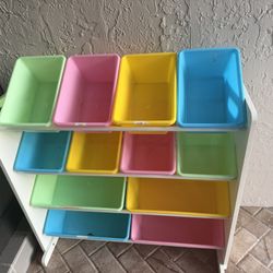 White Toy Storage Shelves With Pastel Color Bins $25Fort Lauderdale, FL