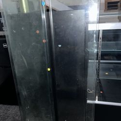 Combination of glass (the main surface), wood (upper and lower details) and metal (fixing brackets a$15Biscayne Park, FL