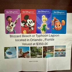 4 Passes To Blizzard Beach Or Typhoon Lagoon Orlando$350Boca Raton, FL