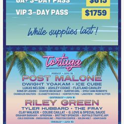 Tortuga music Festival Tickets - 3 Day GA Plus$600Pembroke Pines, FL
