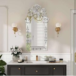 NEW - Bathroom Vanity Mirror with Floral Etched 40" x 21" Decorative Wall Mirror Frameless Beveled Edge Bathroom Mirror for Vanity Bedroom$70Oakland Park, FL